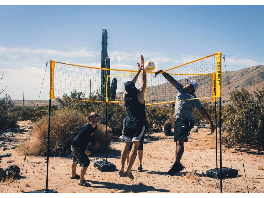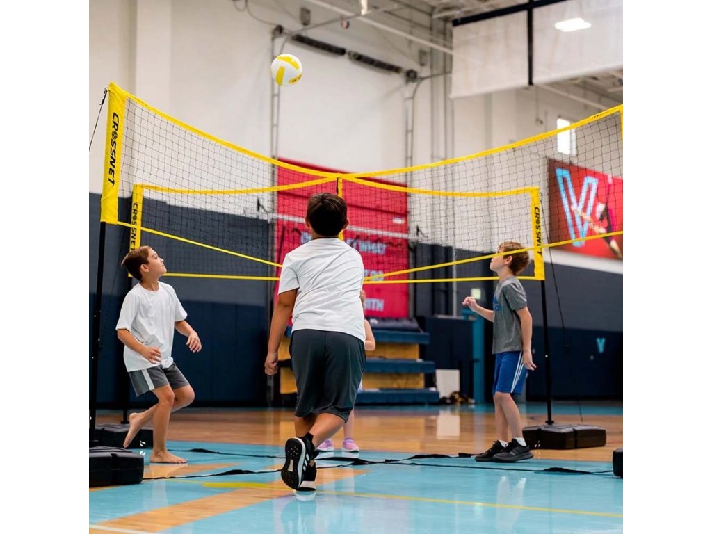 Hrajte CROSSNET v interiéru na podlahách tělocvičen, černých plochách a příjezdových cestách. Můžete bázi kombinovat s naší standardní sadou CROSSNET a hrát volejbal na čtyřech čtvercích v interiéru.